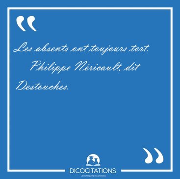 ![Les absents ont toujours [...] - Philippe Néricault, dit Destouches... Les absents ont toujours [...] - Philippe Néricault, dit Destouches...](/imagescitations/Les_absents_ont_toujours_-_Philippe_Nericault_dit_Destouches-5447.jpg)