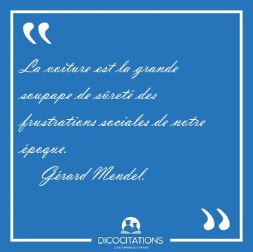 ![La voiture est la grande soupape de sûreté des frustrations [...] - Gérard Mendel... La voiture est la grande soupape de sûreté des frustrations [...] - Gérard Mendel...](/imagescitations/La_voiture_est_la_grande_soupape_de_surete_des_frustrations_-_Gerard_Mendel-54488.jpg)