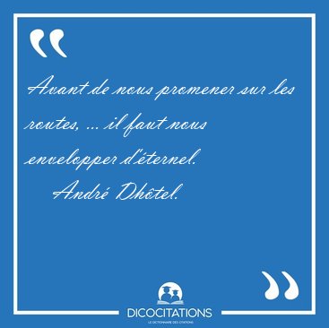 Avant de nous promener sur les routes, ... il faut nous envelopper d'éternel.