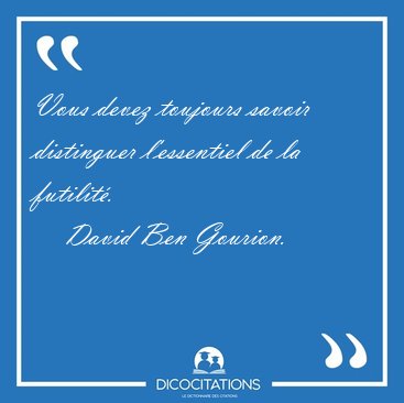 ![Vous devez toujours savoir distinguer l'essentiel de la [...] - David Ben Gourion... Vous devez toujours savoir distinguer l'essentiel de la [...] - David Ben Gourion...](/imagescitations/Vous_devez_toujours_savoir_distinguer_l_essentiel_de_la_-_David_Ben_Gourion-54936.jpg)