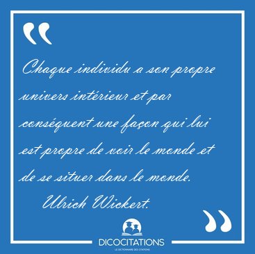 ![Chaque individu a son propre univers intérieur et par conséquent [...] - Ulrich Wickert... Chaque individu a son propre univers intérieur et par conséquent [...] - Ulrich Wickert...](/imagescitations/Chaque_individu_a_son_propre_univers_interieur_et_par_consequent_-_Ulrich_Wickert-55012.jpg)