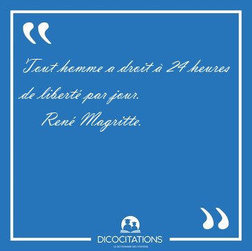 ![Tout homme a droit à 24 heures de liberté par [...] - René Magritte... Tout homme a droit à 24 heures de liberté par [...] - René Magritte...](/imagescitations/Tout_homme_a_droit_a_24_heures_de_liberte_par_-_Rene_Magritte-55135.jpg)