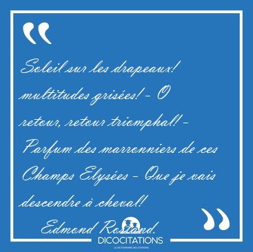 ![Soleil sur les drapeaux! multitudes grisées! - O retour, retour [...] - Edmond Rostand... Soleil sur les drapeaux! multitudes grisées! - O retour, retour [...] - Edmond Rostand...](/imagescitations/Soleil_sur_les_drapeaux_multitudes_grisees_-_O_retour_retour_-_Edmond_Rostand-55944.jpg)