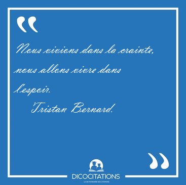 ![Nous vivions dans la crainte, nous allons vivre dans [...] - Tristan Bernard... Nous vivions dans la crainte, nous allons vivre dans [...] - Tristan Bernard...](/imagescitations/Nous_vivions_dans_la_crainte_nous_allons_vivre_dans_-_Tristan_Bernard-56136.jpg)