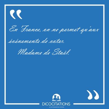 ![En France, on ne permet qu'aux événements de [...] - Madame de Staël... En France, on ne permet qu'aux événements de [...] - Madame de Staël...](/imagescitations/En_France_on_ne_permet_qu_aux_evenements_de_-_Madame_de_Stael-56444.jpg)