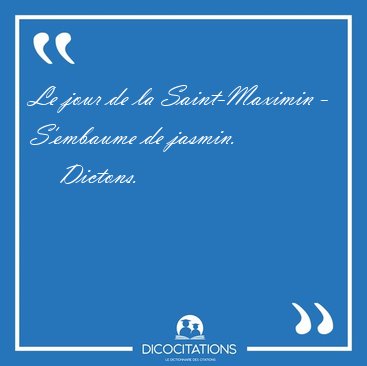 ![Le jour de la Saint-Maximin - S'embaume de [...] - Dictons... Le jour de la Saint-Maximin - S'embaume de [...] - Dictons...](/imagescitations/Le_jour_de_la_Saint-Maximin_-_S_embaume_de_-_Dictons-56905.jpg)