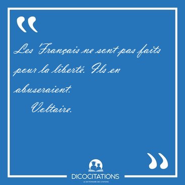 ![Les Français ne sont pas faits pour la liberté. Ils en [...] - Voltaire... Les Français ne sont pas faits pour la liberté. Ils en [...] - Voltaire...](/imagescitations/Les_Francais_ne_sont_pas_faits_pour_la_liberte_Ils_en_-_Voltaire-56970.jpg)