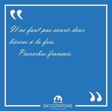 ![Il ne faut pas courir deux lièvres à la [...] - Proverbes français... Il ne faut pas courir deux lièvres à la [...] - Proverbes français...](/imagescitations/Il_ne_faut_pas_courir_deux_lievres_a_la_-_Proverbes_francais-56973.jpg)