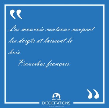 ![Les mauvais couteaux coupent les doigts et laissent le [...] - Proverbes français... Les mauvais couteaux coupent les doigts et laissent le [...] - Proverbes français...](/imagescitations/Les_mauvais_couteaux_coupent_les_doigts_et_laissent_le_-_Proverbes_francais-57043.jpg)