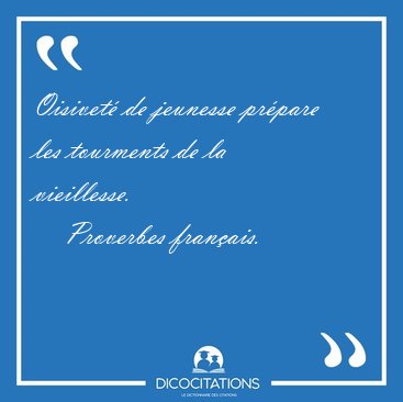 Oisiveté de jeunesse prépare les tourments de la vieillesse.