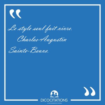 Le style seul fait vivre.