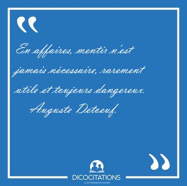 ![En affaires, mentir n'est jamais nécessaire, rarement utile et [...] - Auguste Detoeuf... En affaires, mentir n'est jamais nécessaire, rarement utile et [...] - Auguste Detoeuf...](/imagescitations/En_affaires_mentir_n_est_jamais_necessaire_rarement_utile_et_-_Auguste_Detoeuf-58070.jpg)