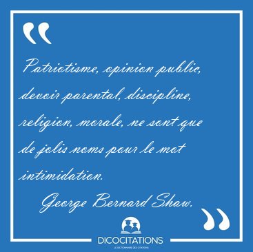 ![Patriotisme, opinion public, devoir parental, discipline, [...] - George Bernard Shaw... Patriotisme, opinion public, devoir parental, discipline, [...] - George Bernard Shaw...](/imagescitations/Patriotisme_opinion_public_devoir_parental_discipline_-_George_Bernard_Shaw-58662.jpg)