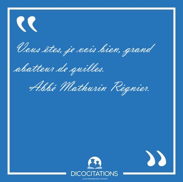 Vous êtes, je vois bien, grand abatteur de quilles.