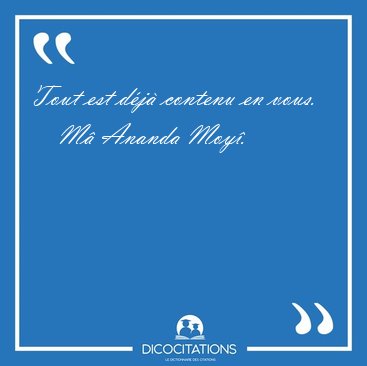 Plus sur cette citation >> Citation de Mâ Ananda Moyî (n° 59909) - Ajouter à mon carnet de citations