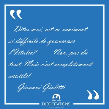 - Dites-moi, est-ce vraiment si difficile de gouverner l'Iitalie? - - - Non, pas du tout. Mais c'est complètement inutile!