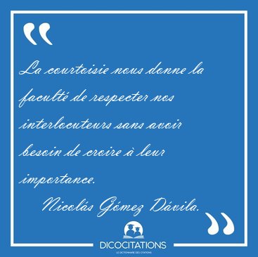 La courtoisie nous donne la faculté de respecter nos interlocuteurs sans avoir besoin de croire à leur importance.