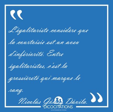 L'égalitariste considère que la courtoisie est un aveu d'infériorité. Entre égalitaristes, c'est la grossièreté qui marque le rang.