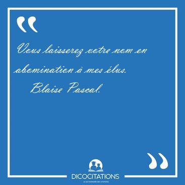 ![Vous laisserez votre nom en abomination à mes [...] - Blaise Pascal... Vous laisserez votre nom en abomination à mes [...] - Blaise Pascal...](/imagescitations/Vous_laisserez_votre_nom_en_abomination_a_mes_-_Blaise_Pascal-60125.jpg)