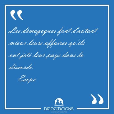 Les démagogues font d'autant mieux leurs affaires qu'ils ont jeté leur pays dans la discorde.