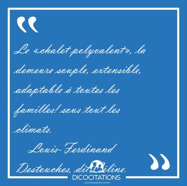 ![Le «chalet polyvalent», la demeure souple, extensible, adaptable [...] - Louis-Ferdinand Destouches, dit Céline... Le «chalet polyvalent», la demeure souple, extensible, adaptable [...] - Louis-Ferdinand Destouches, dit Céline...](/imagescitations/Le_chalet_polyvalent_la_demeure_souple_extensible_adaptable_-_Louis-Ferdinand_Destouches_dit_Celine-60952.jpg)