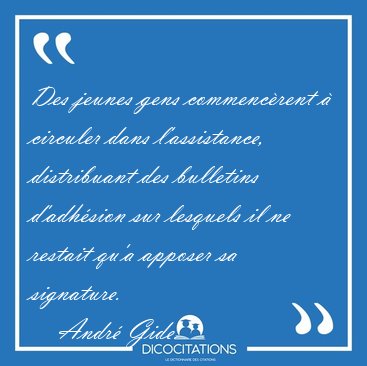![Des jeunes gens commencèrent à circuler dans l'assistance, [...] - André Gide... Des jeunes gens commencèrent à circuler dans l'assistance, [...] - André Gide...](/imagescitations/Des_jeunes_gens_commencerent_a_circuler_dans_l_assistance_-_Andre_Gide-61793.jpg)