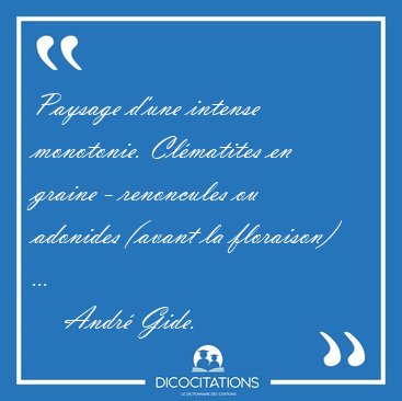 ![Paysage d'une intense monotonie. Clématites en graine - [...] - André Gide... Paysage d'une intense monotonie. Clématites en graine - [...] - André Gide...](/imagescitations/Paysage_d_une_intense_monotonie_Clematites_en_graine_-_-_Andre_Gide-61860.jpg)