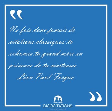 Ne fais donc jamais de citations classiques: tu exhumes ta grand-mère en présence de ta maîtresse.