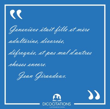 ![Geneviève était fille et mère adultérine, divorcée, défroquée, [...] - Jean Giraudoux... Geneviève était fille et mère adultérine, divorcée, défroquée, [...] - Jean Giraudoux...](/imagescitations/Genevieve_etait_fille_et_mere_adulterine_divorcee_defroquee_-_Jean_Giraudoux-61930.jpg)