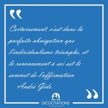 Certainement, c'est dans la parfaite abnégation que l'individualisme triomphe, et le renoncement à soi est le sommet de l'affirmation.