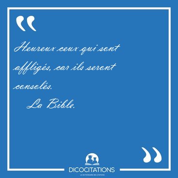 ![Heureux ceux qui sont affligés, car ils seront [...] - La Bible... Heureux ceux qui sont affligés, car ils seront [...] - La Bible...](/imagescitations/Heureux_ceux_qui_sont_affliges_car_ils_seront_-_La_Bible-62090.jpg)