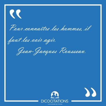 Pour connaître les hommes, il faut les voir agir.