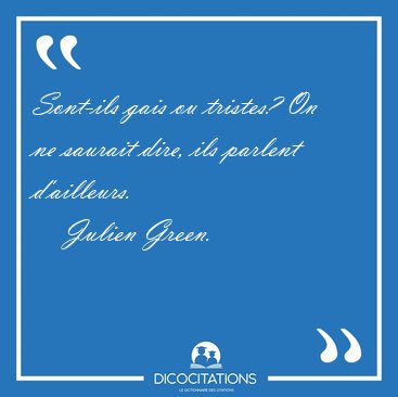 ![Sont-ils gais ou tristes? On ne saurait dire, ils parlent [...] - Julien Green... Sont-ils gais ou tristes? On ne saurait dire, ils parlent [...] - Julien Green...](/imagescitations/Sont-ils_gais_ou_tristes_On_ne_saurait_dire_ils_parlent_-_Julien_Green-62402.jpg)