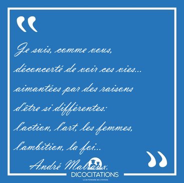 ![Je suis, comme vous, déconcerté de voir ces vies... aimantées [...] - André Malraux... Je suis, comme vous, déconcerté de voir ces vies... aimantées [...] - André Malraux...](/imagescitations/Je_suis_comme_vous_deconcerte_de_voir_ces_vies_aimantees_-_Andre_Malraux-62414.jpg)