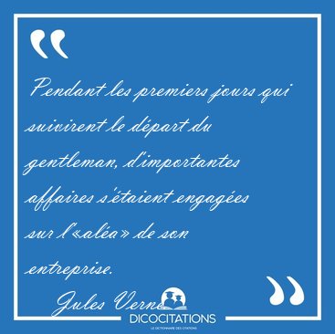 Pendant les premiers jours qui suivirent le départ du gentleman, d'importantes affaires s'étaient engagées sur l'«aléa» de son entreprise.