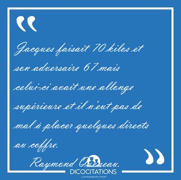 ![Jacques faisait 70 kilos et son adversaire 67 mais celui-ci [...] - Raymond Queneau... Jacques faisait 70 kilos et son adversaire 67 mais celui-ci [...] - Raymond Queneau...](/imagescitations/Jacques_faisait_70_kilos_et_son_adversaire_67_mais_celui-ci_-_Raymond_Queneau-62857.jpg)