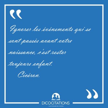 ![Ignorer les événements qui se sont passés avant votre naissance, [...] - Cicéron... Ignorer les événements qui se sont passés avant votre naissance, [...] - Cicéron...](/imagescitations/Ignorer_les_evenements_qui_se_sont_passes_avant_votre_naissance_-_Ciceron-63302.jpg)