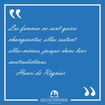 ![Les femmes ne sont guère changeantes; elles restent elles-mêmes, [...] - Henri de Régnier... Les femmes ne sont guère changeantes; elles restent elles-mêmes, [...] - Henri de Régnier...](/imagescitations/Les_femmes_ne_sont_guere_changeantes_elles_restent_elles-memes_-_Henri_de_Regnier-63380.jpg)
