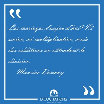 ![Les mariages d'aujourd'hui? Ni union, ni multiplication, mais [...] - Maurice Donnay... Les mariages d'aujourd'hui? Ni union, ni multiplication, mais [...] - Maurice Donnay...](/imagescitations/Les_mariages_d_aujourd_hui_Ni_union_ni_multiplication_mais_-_Maurice_Donnay-63525.jpg)