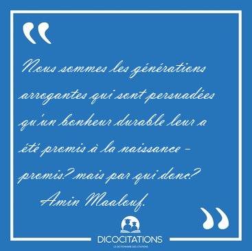 Nous sommes les générations arrogantes qui sont persuadées qu'un bonheur durable leur a été promis à la naissance - promis? mais par qui donc?