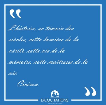 L'histoire, ce témoin des siècles, cette lumière de la vérité, cette vie de la mémoire, cette maîtresse de la vie.