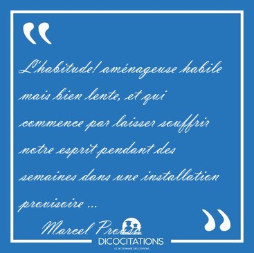 L'habitude! aménageuse habile mais bien lente, et qui commence par laisser souffrir notre esprit pendant des semaines dans une installation provisoire ...