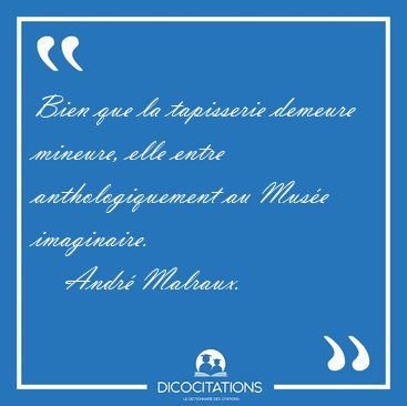 ![Bien que la tapisserie demeure mineure, elle entre [...] - André Malraux... Bien que la tapisserie demeure mineure, elle entre [...] - André Malraux...](/imagescitations/Bien_que_la_tapisserie_demeure_mineure_elle_entre_-_Andre_Malraux-64326.jpg)