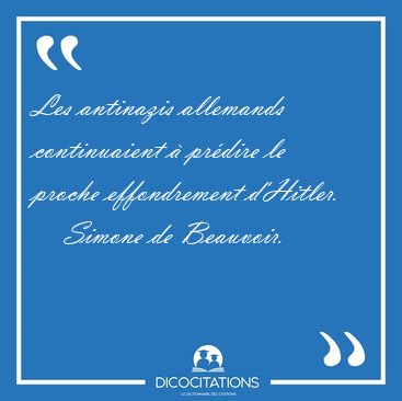 ![Les antinazis allemands continuaient à prédire le proche [...] - Simone de Beauvoir... Les antinazis allemands continuaient à prédire le proche [...] - Simone de Beauvoir...](/imagescitations/Les_antinazis_allemands_continuaient_a_predire_le_proche_-_Simone_de_Beauvoir-64371.jpg)