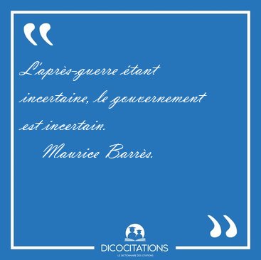 ![L'après-guerre étant incertaine, le gouvernement est [...] - Maurice Barrès... L'après-guerre étant incertaine, le gouvernement est [...] - Maurice Barrès...](/imagescitations/L_apres-guerre_etant_incertaine_le_gouvernement_est_-_Maurice_Barres-64785.jpg)