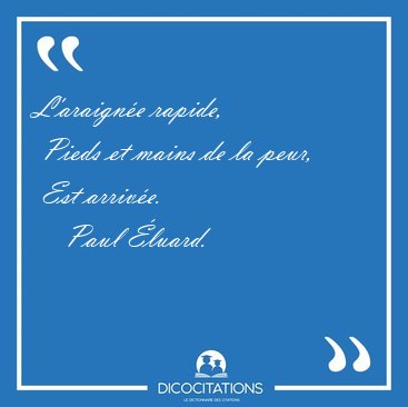 ![L'araignée rapide, Pieds et mains de la peur, Est [...] - Paul Éluard... L'araignée rapide, Pieds et mains de la peur, Est [...] - Paul Éluard...](/imagescitations/L_araignee_rapide_Pieds_et_mains_de_la_peur_Est_-_Paul_Eluard-64813.jpg)