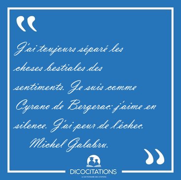 J'ai toujours séparé les choses bestiales des sentiments. Je suis comme Cyrano de Bergerac: j'aime en silence. J'ai peur de l'échec.