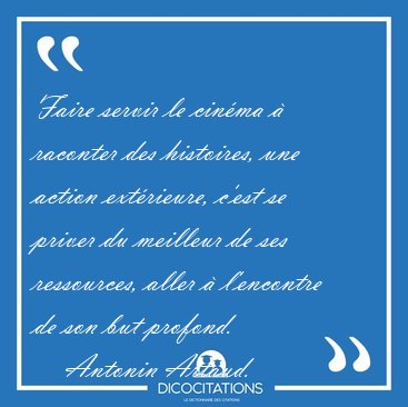 ![Faire servir le cinéma à raconter des histoires, une action [...] - Antonin Artaud... Faire servir le cinéma à raconter des histoires, une action [...] - Antonin Artaud...](/imagescitations/Faire_servir_le_cinema_a_raconter_des_histoires_une_action_-_Antonin_Artaud-65214.jpg)
