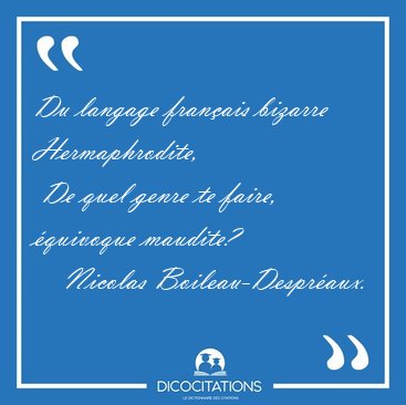 ![Du langage français bizarre Hermaphrodite, De quel genre te [...] - Nicolas Boileau-Despréaux... Du langage français bizarre Hermaphrodite, De quel genre te [...] - Nicolas Boileau-Despréaux...](/imagescitations/Du_langage_francais_bizarre_Hermaphrodite_De_quel_genre_te_-_Nicolas_Boileau-Despreaux-66027.jpg)