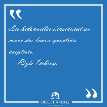 ![Les bidonvilles s'insinuent au coeur des beaux quartiers [...] - Régis Debray... Les bidonvilles s'insinuent au coeur des beaux quartiers [...] - Régis Debray...](/imagescitations/Les_bidonvilles_s_insinuent_au_coeur_des_beaux_quartiers_-_Regis_Debray-66105.jpg)